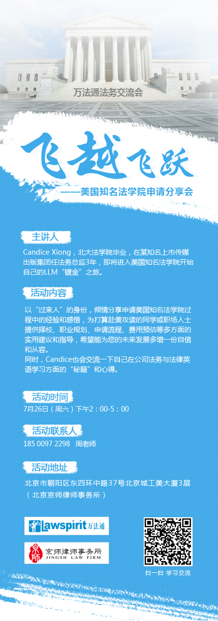 活动地址:北京市朝阳区东四环中路37号北京城工美大厦3层(北京京师律师事务所)